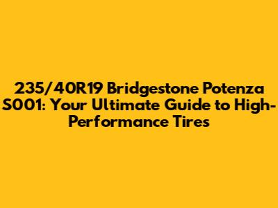 235/40R19 Bridgestone Potenza S001: Your Ultimate Guide