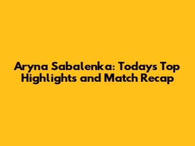 Aryna Sabalenka: Today's Top Highlights And Match Recap