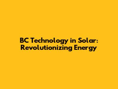 BC Technology In Solar: Revolutionizing Energy