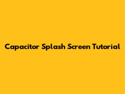 Capacitor Splash Screen: A Complete Tutorial