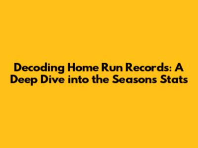 Decoding Home Run Records: A Deep Dive Into The Season's Stats