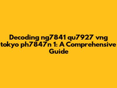 Decoding Ng7841 Qu7927 Vng Tokyo Ph7847n 1: A Comprehensive Guide