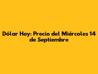 Dólar Hoy: Precio Del Miércoles 14 De Septiembre