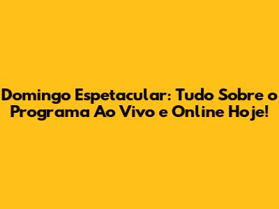 Domingo Espetacular: Assista Ao Vivo E Online Hoje!