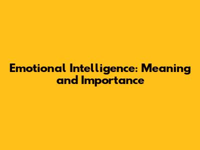 Emotional Intelligence: Meaning And Importance
