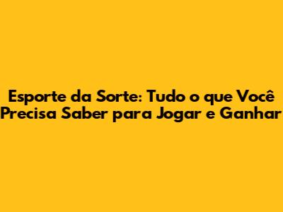 Esporte Da Sorte: Guia Completo E Dicas Para Jogar