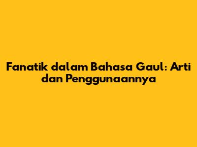 Dalam bahasa gaul, istilah fanatik digunakan untuk menggambarkan seseorang yang memiliki antusiasme atau obsesi yang berlebihan terhadap sesuatu. Penggunaannya bisa bersifat positif, netral, atau negatif, tergantung pada konteks percakapan dan intonasi yang digunakan. Perilaku fanatik memiliki implikasi yang signifikan terhadap individu dan lingkungan sekitarnya, baik positif maupun negatif. Oleh karena itu, penting untuk memahami makna dan implikasi dari istilah ini agar kita dapat berkomunikasi dengan efektif dan mengelola perilaku fanatik dengan bijak. Dengan demikian, kita dapat memanfaatkan antusiasme dan dedikasi yang tinggi untuk mencapai tujuan yang positif, sambil menghindari konsekuensi yang merugikan akibat obsesi yang berlebihan atau tindakan-tindakan ekstrem.