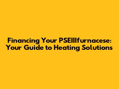 Financing Your PSEIIIfurnacese: Options & Savings Near You!
