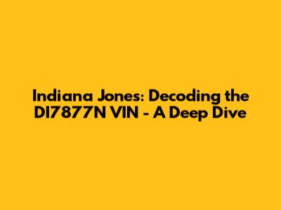 Indiana Jones: Decoding The DI7877N VIN - A Deep Dive