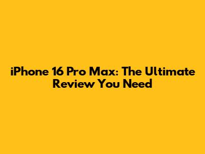 IPhone 16 Pro Max: The Ultimate Review You Need