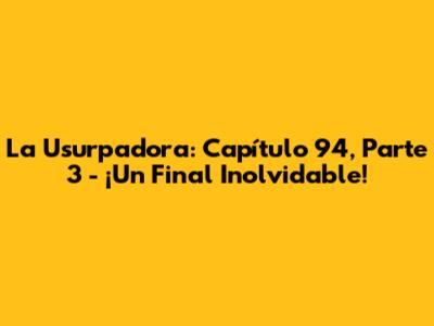 Hey guys! Are you ready for a deep dive into the thrilling conclusion of La Usurpadora's 94th episode? We're talking about part 3, the grand finale of an episode packed with twists, turns, and enough drama to keep us on the edge of our seats! If you're a fan of this telenovela, you know how crucial each episode is, and believe me, this one delivers. In this installment, we're going to break down all the key moments, the emotional rollercoasters, and the cliffhangers that left us screaming at our screens. So, grab your snacks, settle in, and let's dissect La Usurpadora, chapter 94, part 3! This is where the story gets super interesting, so pay close attention. It’s the climax of the episode, and trust me, you won’t want to miss a single detail. We'll explore the complexities of the characters, the dramatic situations, and the final outcomes. Let's start this adventure! The anticipation had been building up, and now, we're here to break it all down. Get ready for a recap that will help you relive every moment, every emotion, and every shocking revelation. This part of the episode is where everything falls into place, so we're talking about important details here! Let's get started.