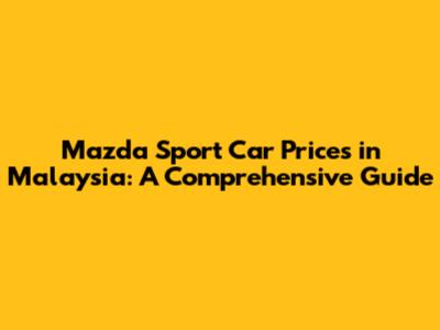 Mazda Sport Car Prices In Malaysia: A Comprehensive Guide