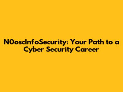 N0oscInfoSecurity: Your Path To A Cyber Security Career