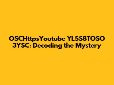 OSCHttpsYoutube YL5S8TOSO 3YSC: Decoding The Mystery