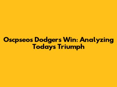 Oscpseo's Dodgers Win: Analyzing Today's Triumph
