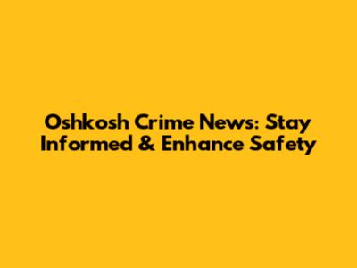 Oshkosh Crime News: Stay Informed & Enhance Safety