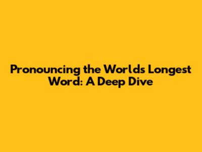 Pronouncing The World's Longest Word: A Deep Dive