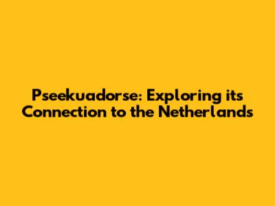 Pseekuadorse: Exploring Its Connection To The Netherlands