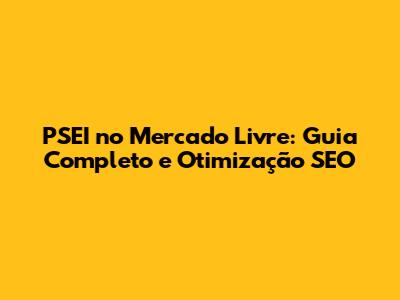 PSEI No Mercado Livre: Guia Completo E Otimização SEO