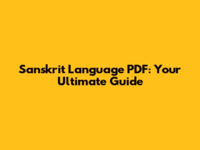 Sanskrit Language PDF: Your Ultimate Guide