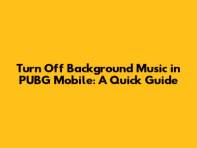 Turn Off Background Music In PUBG Mobile: A Quick Guide
