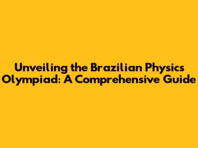 Unveiling The Brazilian Physics Olympiad: A Comprehensive Guide