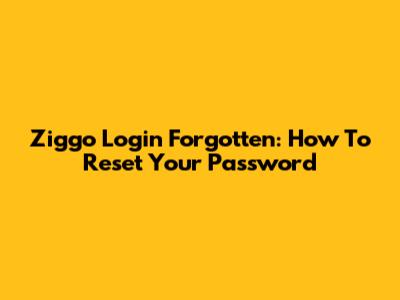 Ziggo Login Forgotten: How To Reset Your Password